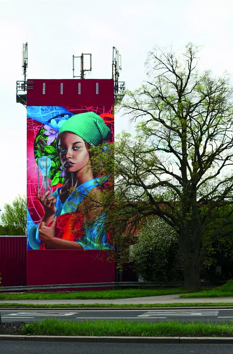 Návrh je vždycky nejtěžší, v tomto případě jsem na něj potřeboval dva měsíce. Chtěl jsem znázornit určitou myšlenku a najít správné symboly. Ale pravda je, že umění nemusí být vždycky jednoznačně pochopitelné. Spíš jde o to zaujmout a umožnit lidem hledat významy. Zpracování na papír je pak už poměrně rychlá záležitost, třetího dubna bylo postavené lešení a mohl jsem začít.