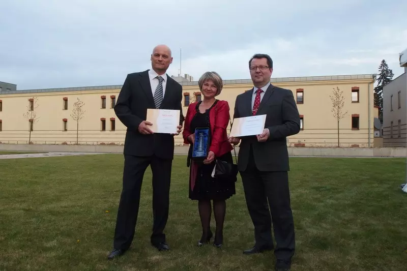 Ocenění převzali (zleva) Michal Gardián - vedoucí závodu Přerov, Malgorzata Rapa-Katbeh - ředitelka společnosti OLTERM & TD Olomouc a primátor města Olomouce Antonín Staněk.
