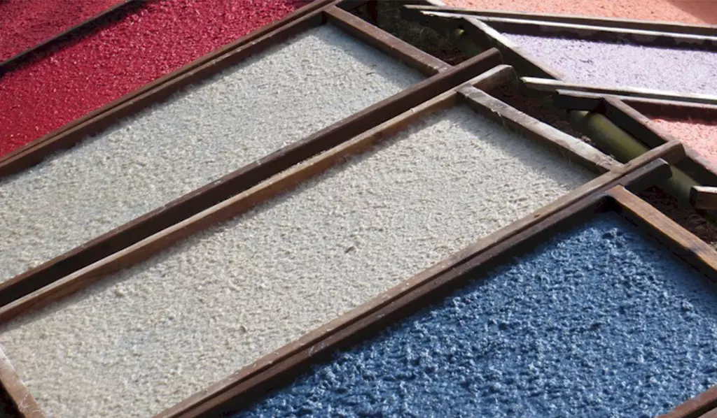 Tento 100% přírodní papír bez obsahu chlóru barvený přírodními pigmenty se vyrábí přímo v parku, a pomáhá tak místním, zejména pak ženám.
