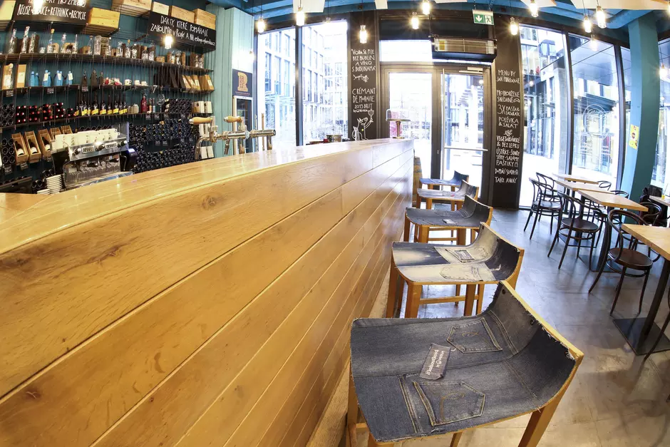 Každý den u nás začíná skvělou snídaní a fairtrade kávou. V poledne můžete ochutnat menu od jednoho z nejlepších českých šéfkuchařů Jana Punčocháře, originální pivo ERKO, vyrobené z recyklované vody nebo některé z dvou set druhů francouzských a českých přírodních vín – například náš oblíbený Crémant de Moravie. Čerstvou kohoutkovou vodu u nás dostanete samozřejmě zdarma.