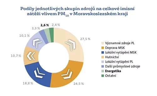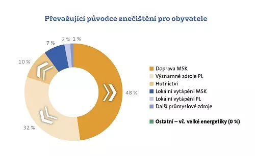 Zajímavé je i porovnání uvádějící, pro kolik obyvatel je který typ zdroje znečištění dominantní. Pro 48 % obyvatel MSK je největším problémem doprava. Druhou největší skupinu představuje dálkový transport prachu ze vzdálených lokalit především v Polsku. Velká energetika v MSK vůbec v tomto porovnání nefiguruje (viz graf 2).