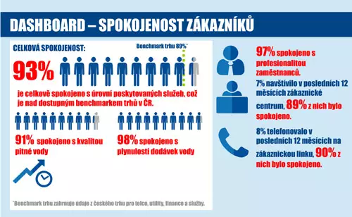 „Celkově je se službami, které nabízejí vodárenské firmy ze skupiny Veolia Česká republika, spokojeno 93 % respondentů, což je nad úrovní dlouhodobého průměru trhu podobných segmentů, který dosahuje 89%. Nejvyšší celková spokojenost je u firemních zákazníků (96 %)“, říká Miloš Rybáček, jednatel společnosti IBRS.
