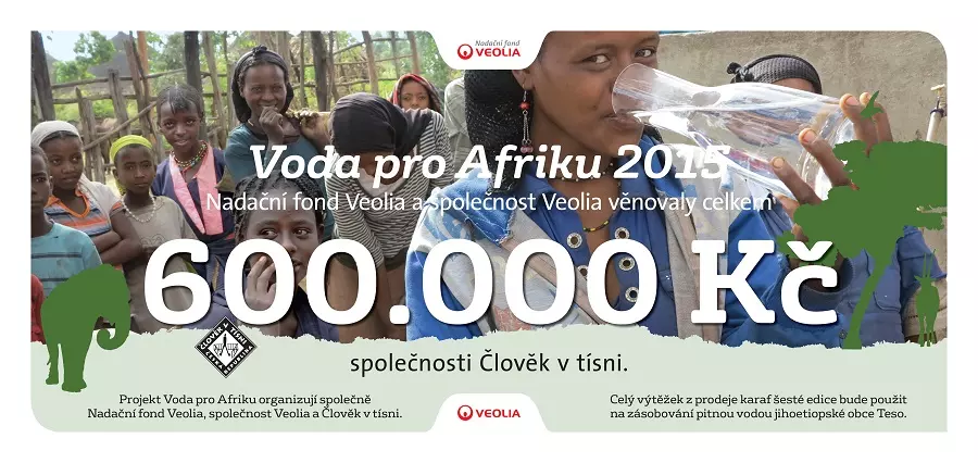 „Věříme, že má smysl pomáhat lidem v nouzi zejména v místě, kde žijí. Voda je základem života, ale bohužel i příčinou řady nepokojů. Společně můžeme pomoci tento problém řešit na chudém etiopském venkově, kam výtěžek směřuje“, říká Marcela Dvořáková, výkonná ředitelka komunikace a marketingu Veolia Česká republika pro Čechy. Celý výtěžek z prodeje karaf této edice bude použit na zásobování pitnou vodou jihoetiopské obce Teso a pomůže jejím 4 200 obyvatelům. Veškeré finanční prostředky získané z prodeje karaf putují na sbírku Skutečná pomoc neziskové organizace Člověk v tísni, o.p.s., která za tyto prostředky zajistí opravu dalšího vodního vrtu v africké Etiopii, kde až 74 % venkovanů nemá přístup k nezávadné vodě.